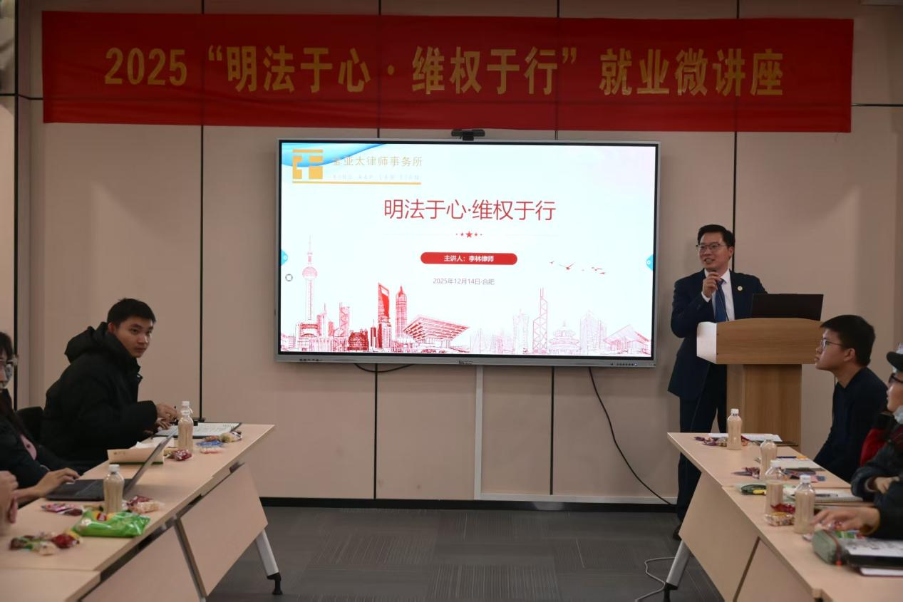 为助力高校学子筑牢就业法律防线,提升职场风险防范意识,2025年12月14日下午,由中国科学技术大学举办的明法于心维权于行就业微讲座,在东...