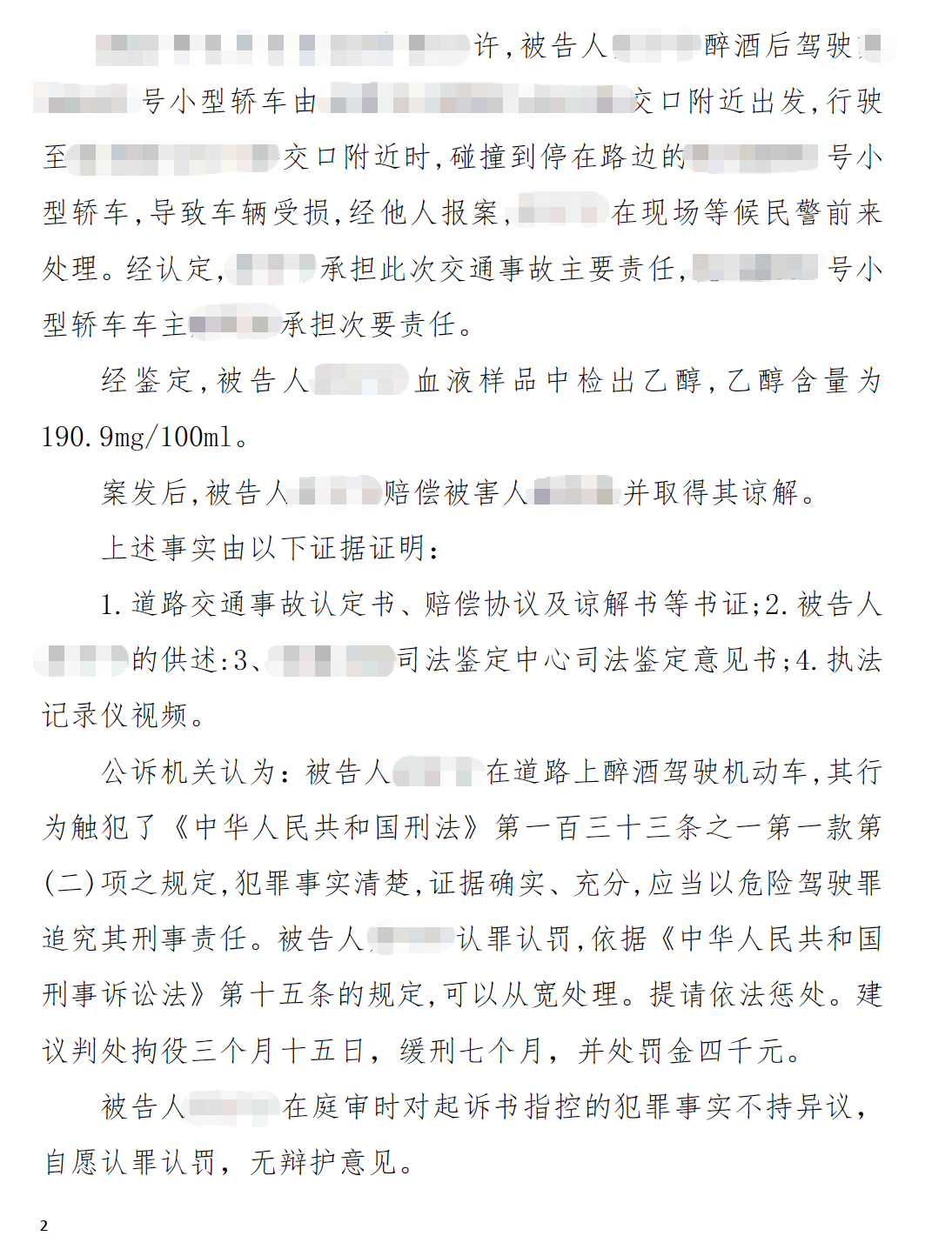 关键词酒驾前科、交通事故全责、醉驾、190.9mg/100ml;突破量刑指导意见、缓刑